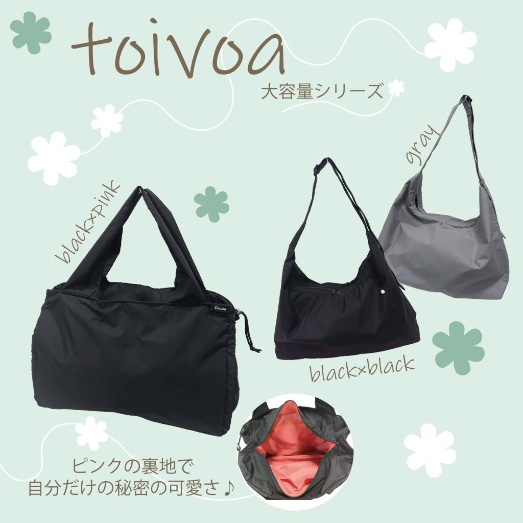 今回、ご紹介させていただくのは【toivoa】のドロスト付き大容量シリーズです。