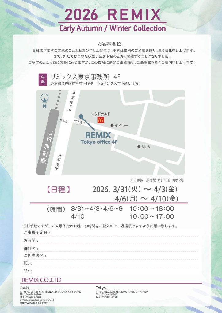 今回の展示会のテーマは2026 Early Autumn/Winter Collectionです。